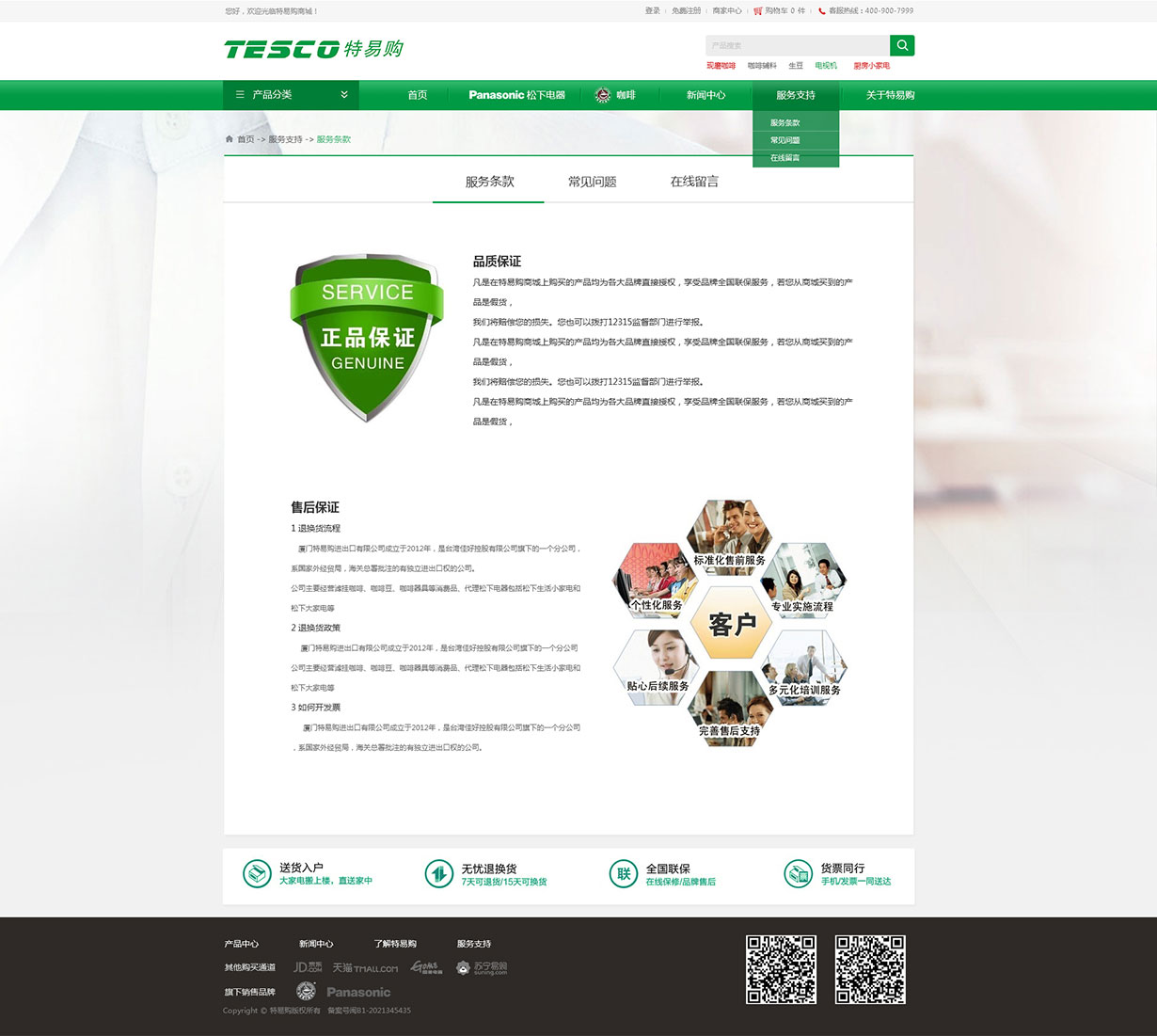 服务:厦门特易购有着专业化的在线客户服务和销售服务和售后追踪服务,致力于满足客户需求。并根据电子商务的实际情况为不同层次、不同需求、不同理念的客户解决不同的问题,并将前端的客户订单管理、新老客户维护管理、后端的库存管理、仓储管理、运输管理等体系做好尽善尽美。