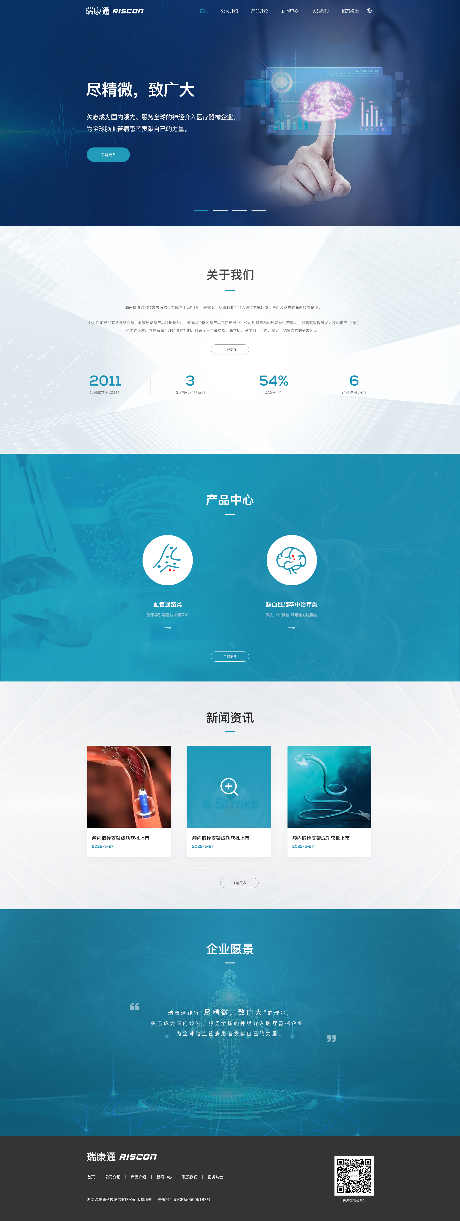 湖南瑞康通科技发展有限公司 网站建设湖南瑞康通科技发展有限公司成立于2011年,是一家集研发、生产和销售为一体的高新技术企业,数年来一直深耕于脑血管介入医疗领域。