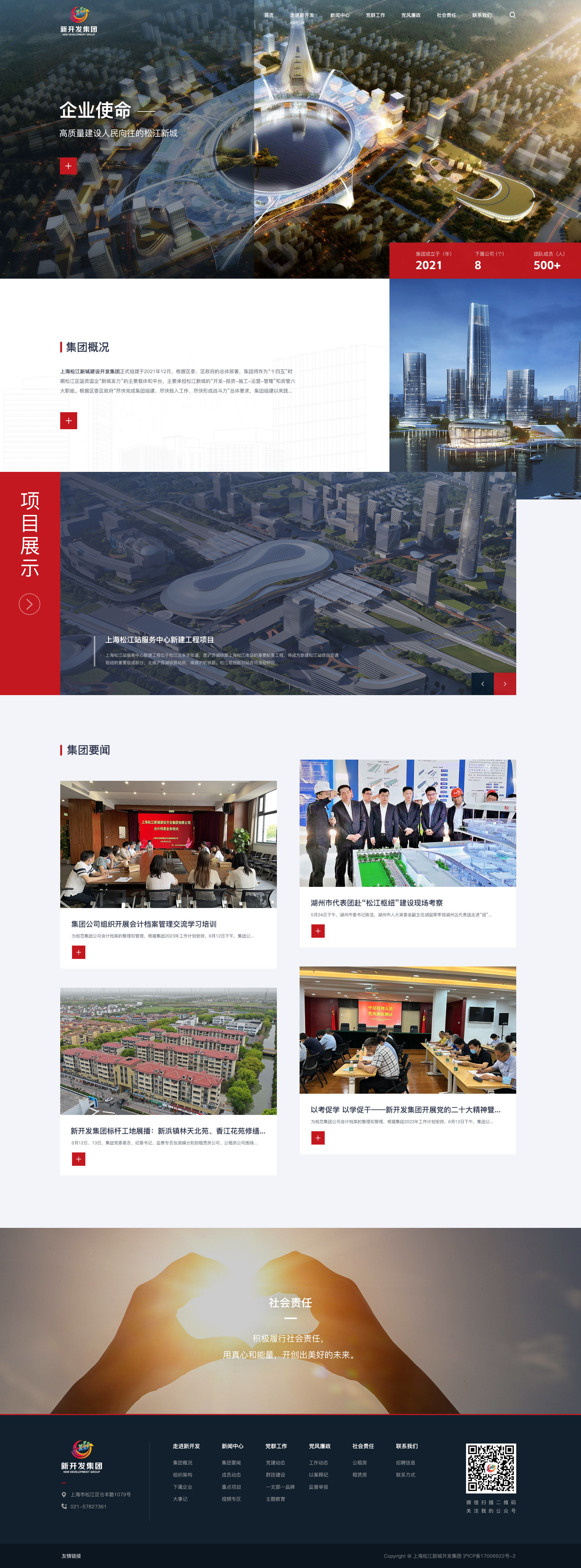 集团官网 改版升级集团正式组建于2021年12月,根据区委、区政府的总体部署,集团将作为“十四五”时期松江区国资国企“新城发力”的主要载体和平台,主要承担松江新城的“开发-投资-施工-运营-管理”和房管六大职能。